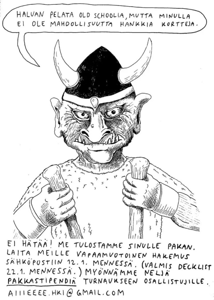 Jos 93/94 MTG kiinnostaa, niin tämä on mainio paikka ja matalan kynnyksen tapahtuma tulla testaamaan. Jos vanhoja kortteja on vaikea hankkia TAI itse tulostaa, niin tarjoamme myös tulostuspalvelua: saat tulostetun pakan käteen, millä pääset pelailemaan.
